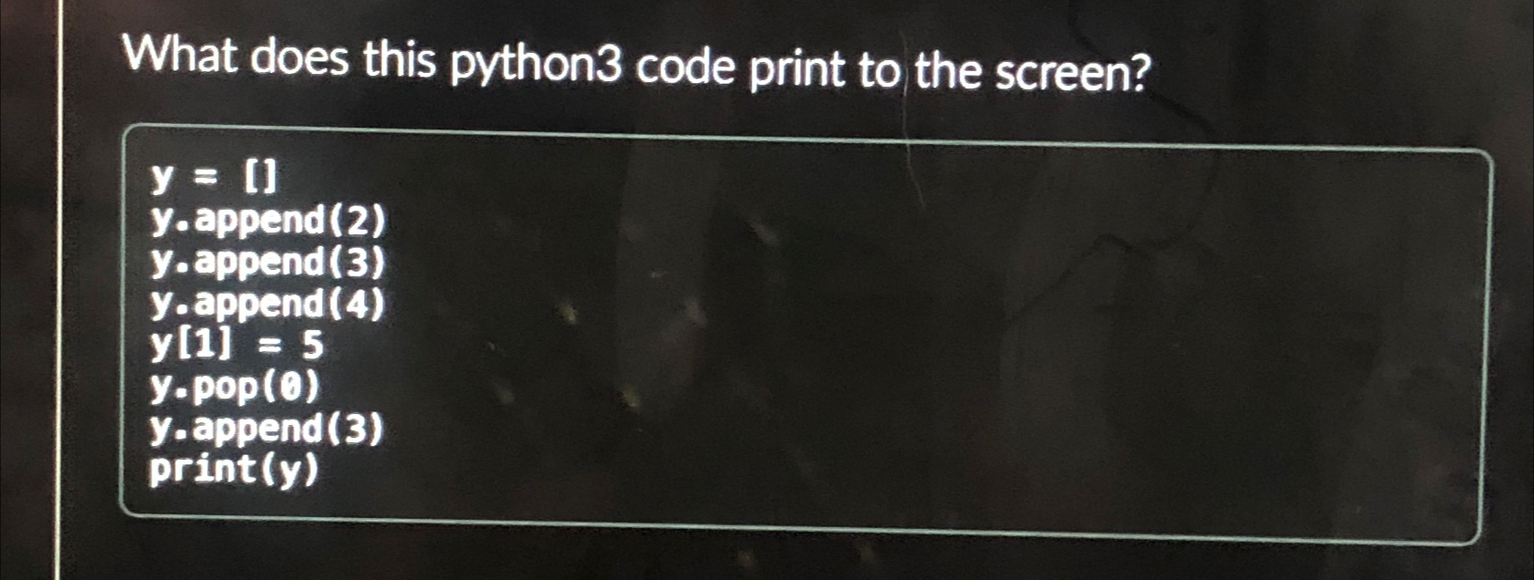 Based on this image's title: โWhat Does This Python Code Print? ๐๐#facts #coding #foryou #python # ...โ
