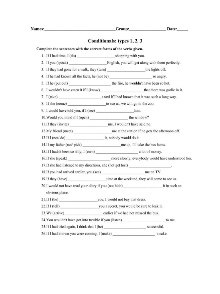 Conditionals Exercises with Answers - Free Grammar Worksheet PDF • 7ESL