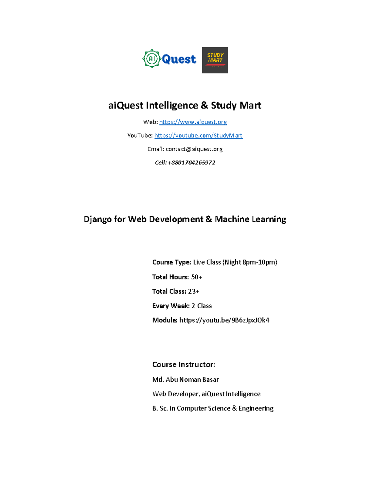 Django for Web and AI New Module - aiQuest Intelligence & Study Mart ...