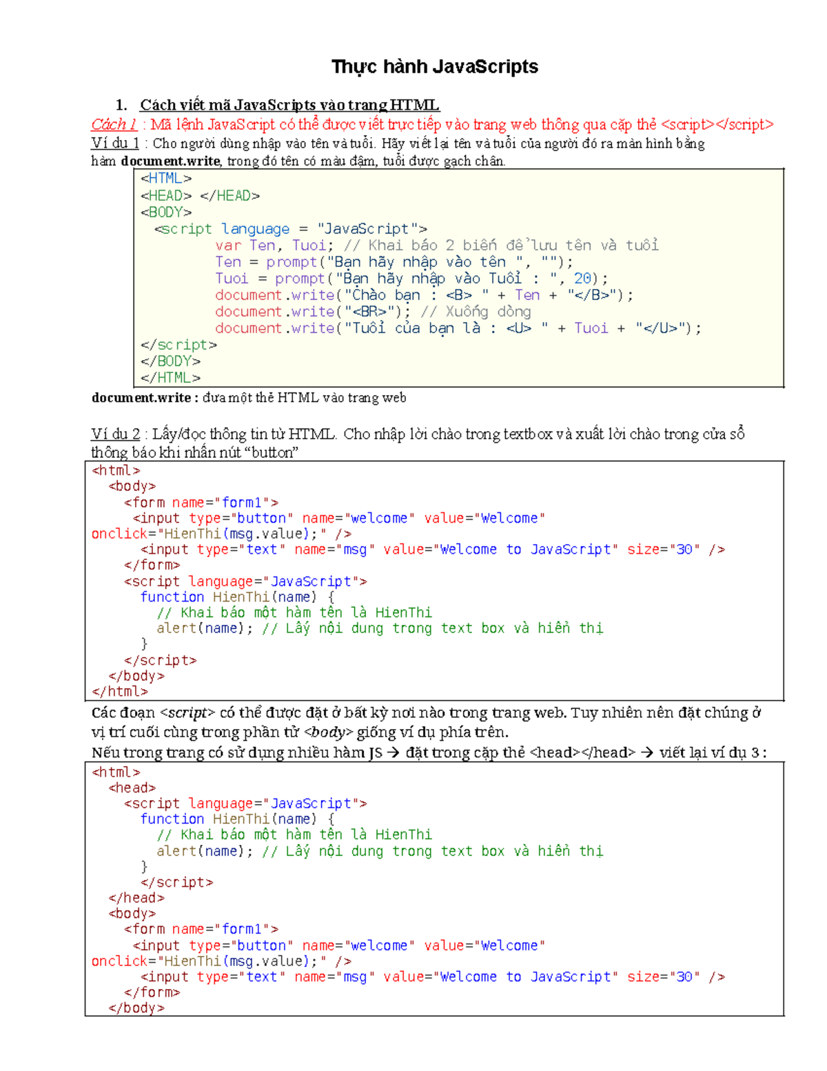 Web-Lab03 JS - Giáo trình web - Thực hành JavaScripts 1. Cách viết mã ...