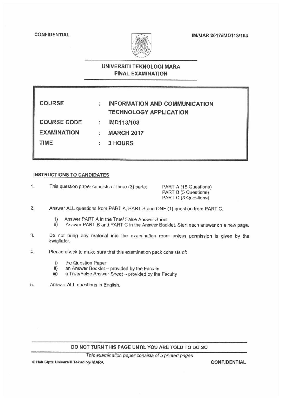 Exam March 2017, questions - Information and Communication Technology ...