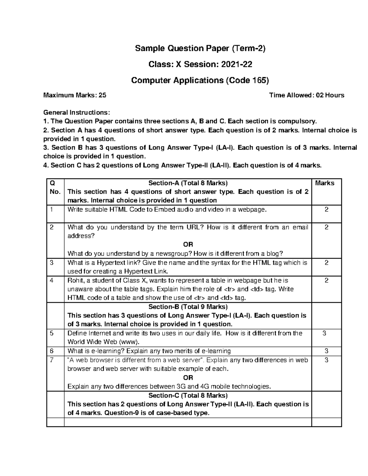 Computer Application-SQP Term2 - Sample Question Paper (Term-2) Class ...