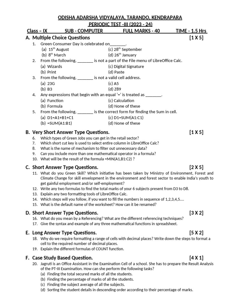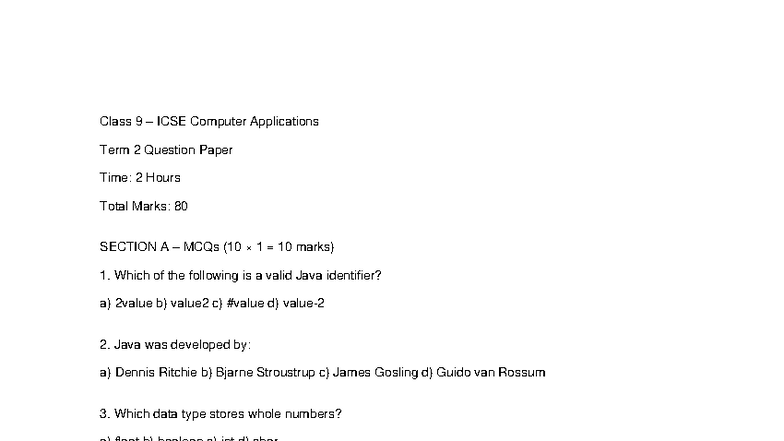 Class 9 ICSE Computer Applications Term 2 Question Paper - Studocu