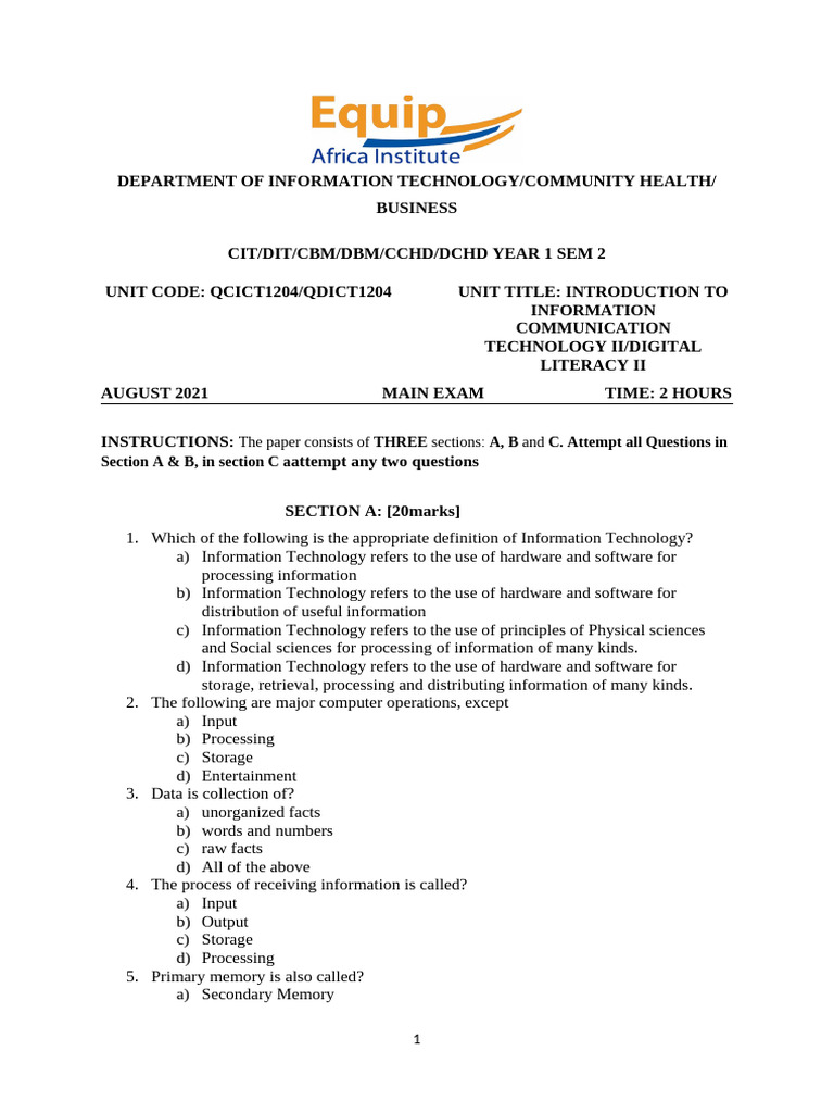 Introduction to ICT II Exam Paper | PDF | Computer Network | Computer ...