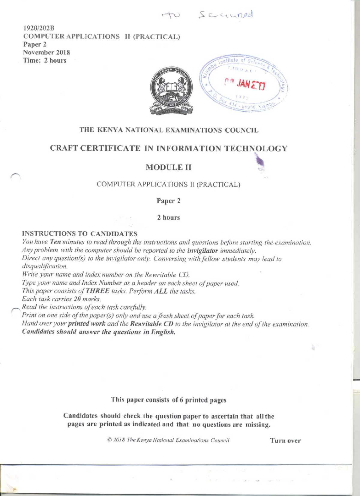 Computer Applications II (Practical) Paper 2 Nov 2018 CCT Exam Guide ...