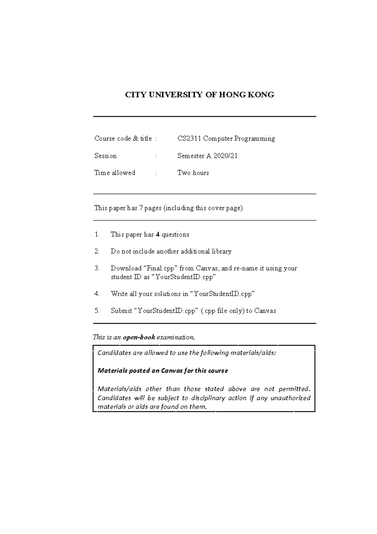 20sem A CS2311 Final Exam Paper - Computer Programming - Studocu