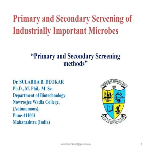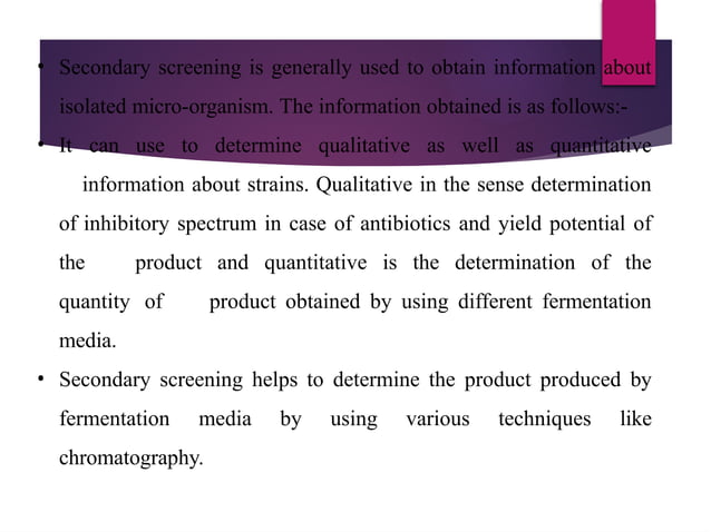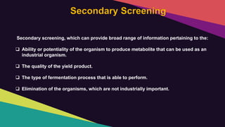 Secondary screening of industrial important microbes | PPTX