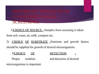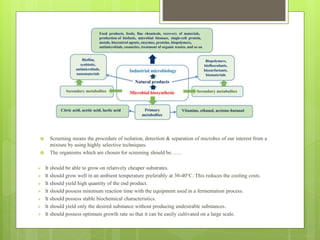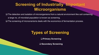 Screening of industrial microorganisms | PPTX