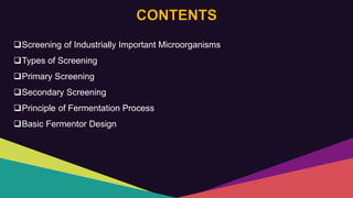 Screeneing of industrially important organisms and fermenter design | PPTX