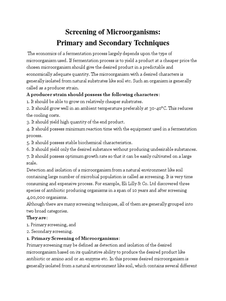 SOLUTION: Primary and secondary screening of industrially important ...