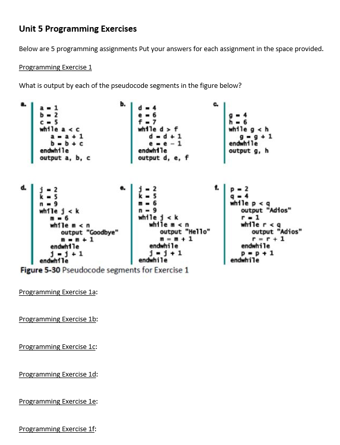 Solved Unit 5 Programming Exercises Below are 5 programming | Chegg.com
