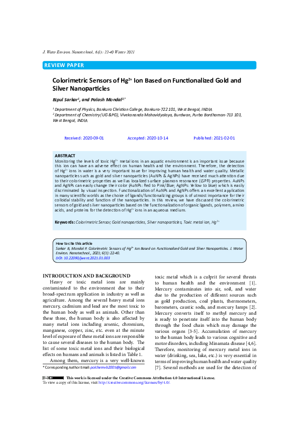 (PDF) Colorimetric Sensors of Hg2+ Ion Based on Functionalized Gold and ...