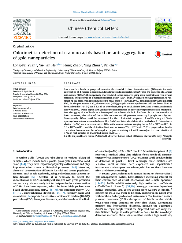 (PDF) Colorimetric detection of d-amino acids based on anti-aggregation ...