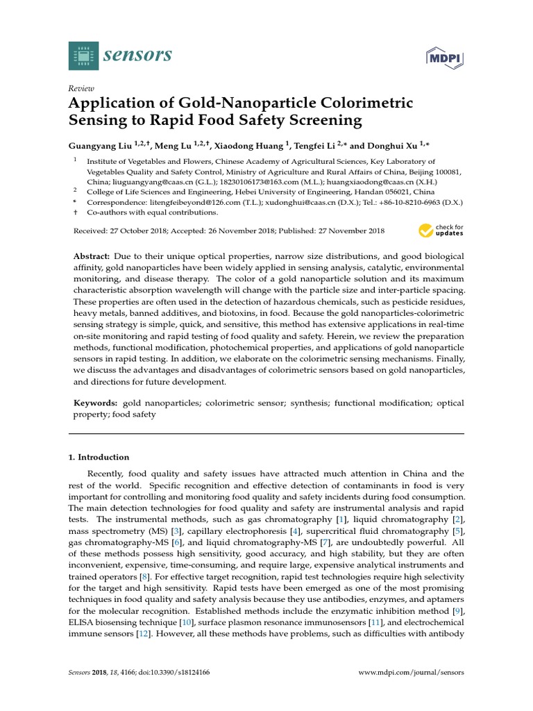 (PDF) Gold Nanoparticle Based Colorimetric Biosensing for Food Safety