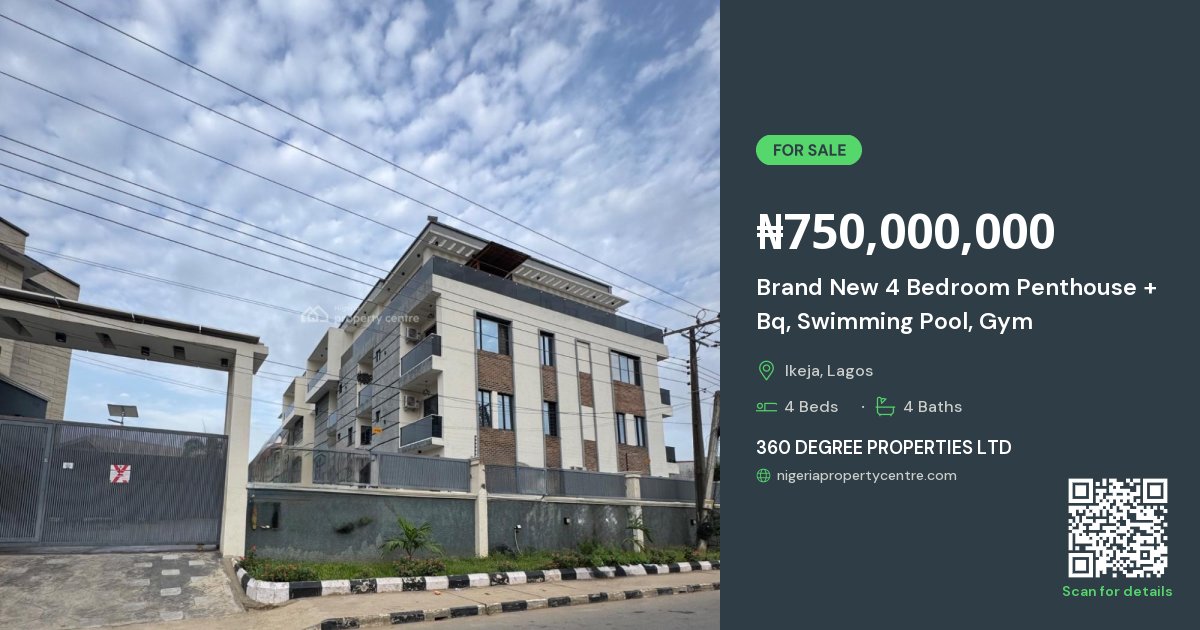 For Sale: Brand New 4 Bedroom Penthouse + Bq, Swimming Pool, Gym, Ikeja ...