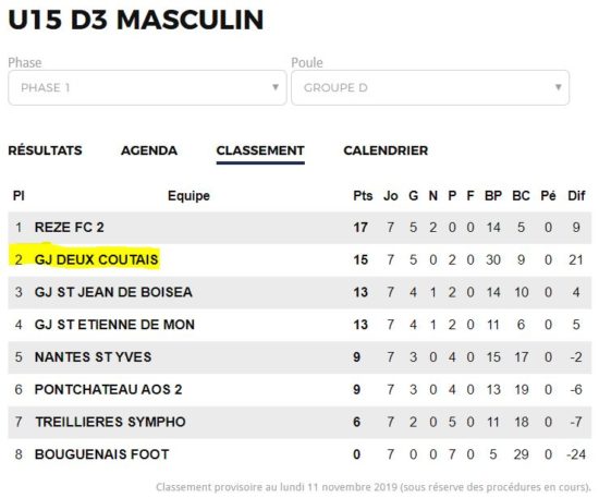Actualité - Classement U15 PHASE 1 - club Football US Cailly - Footeo