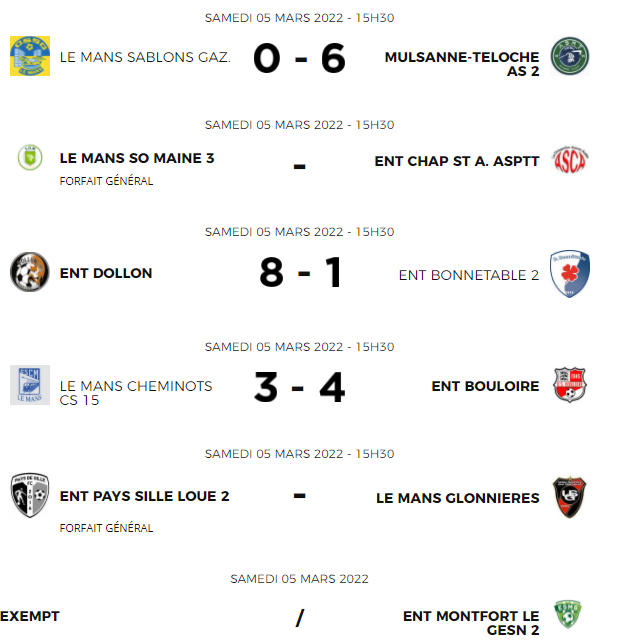 Tour n°2 – Coupe et Challenge du District U15 & U18 – DISTRICT DE LA ...