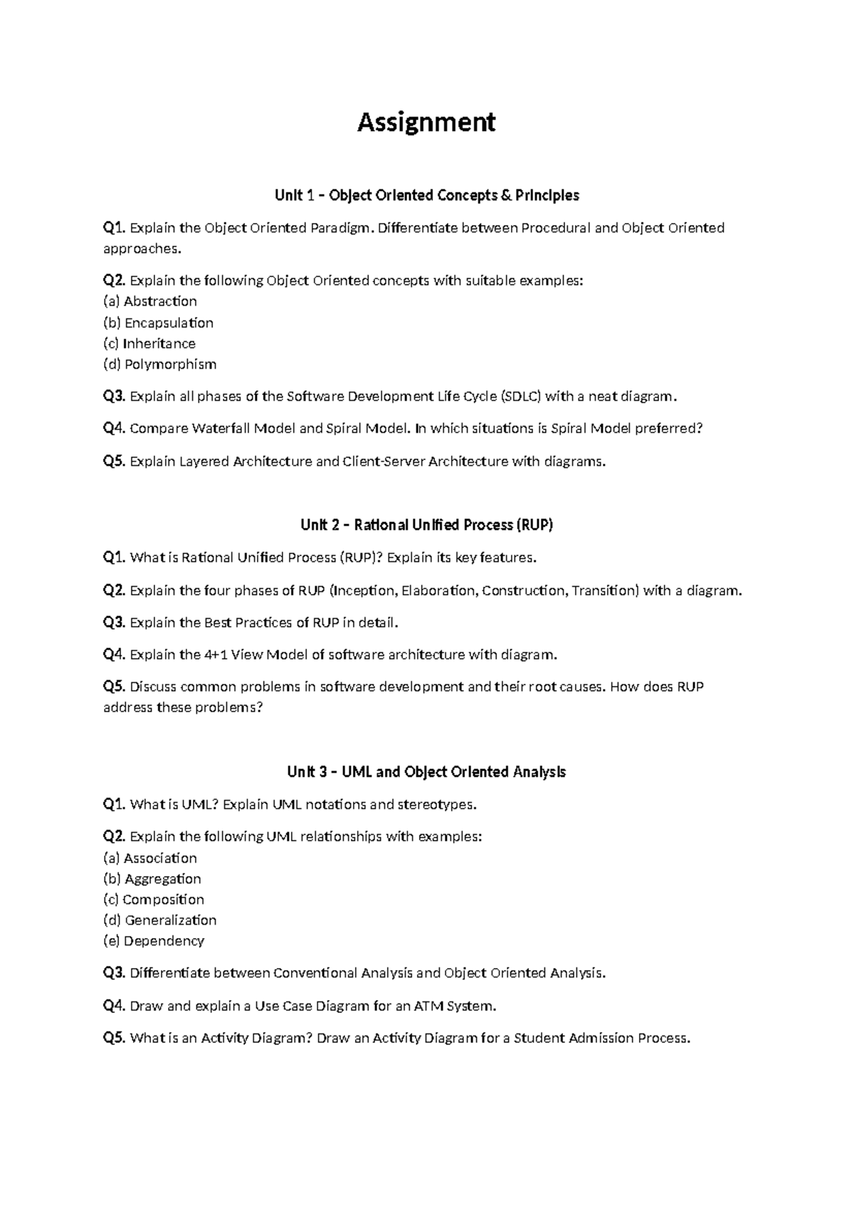 Assignment - Unit 1 & 2 Object Oriented Concepts & RUP Notes - Studocu