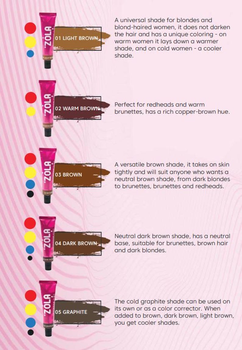 ZOLA Set of Eyebrow Tint With Collagen 5x15ml (5 Colors and Oxidant) - Etsy