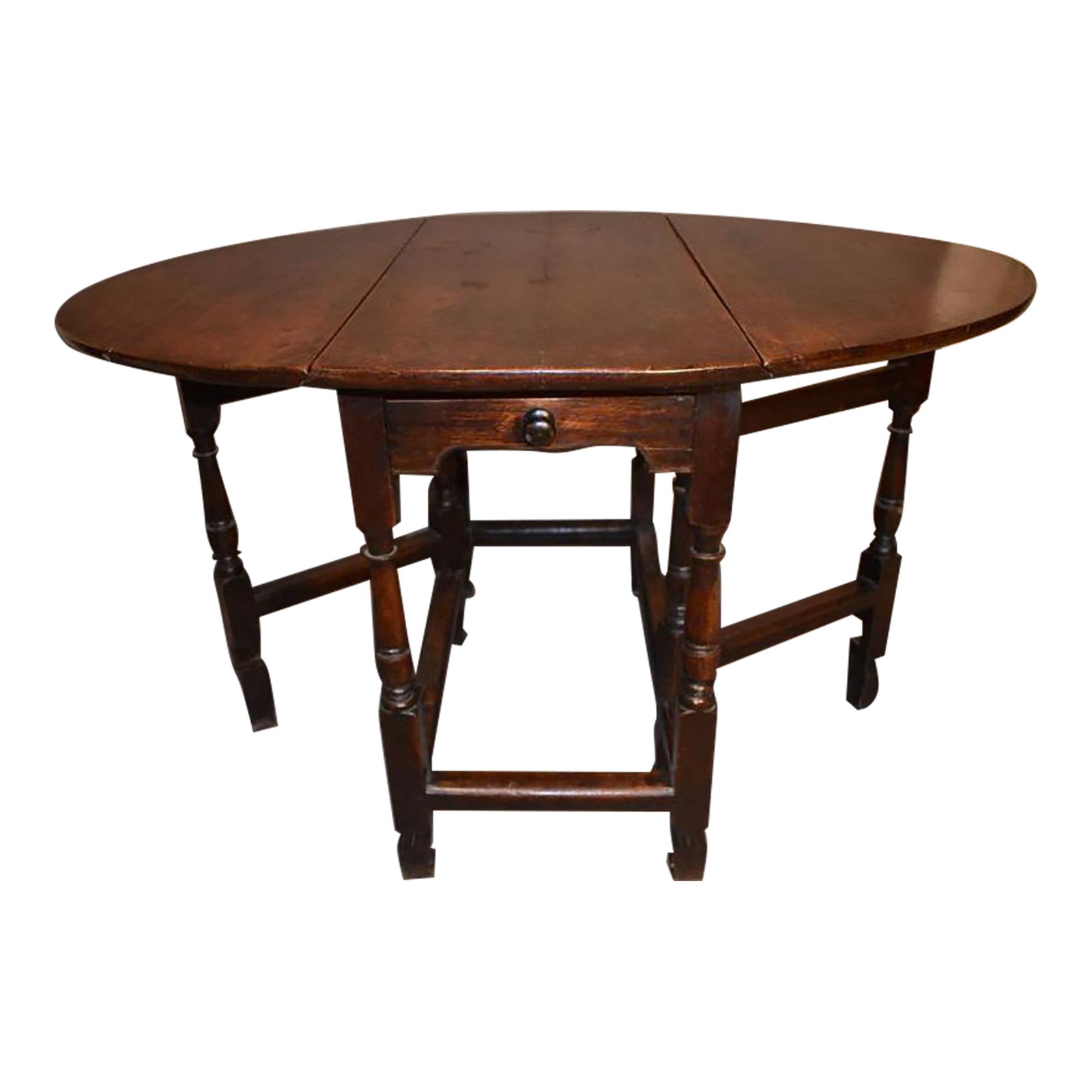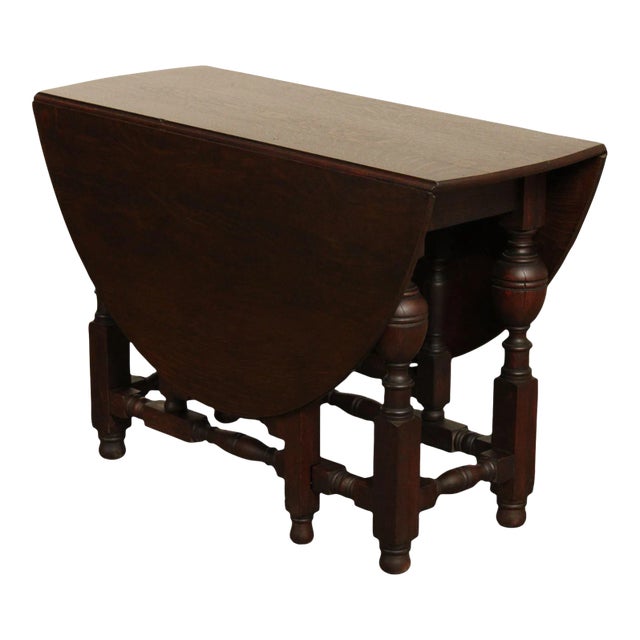 William and Mary Dark Oak Drop Leaf Table | Chairish