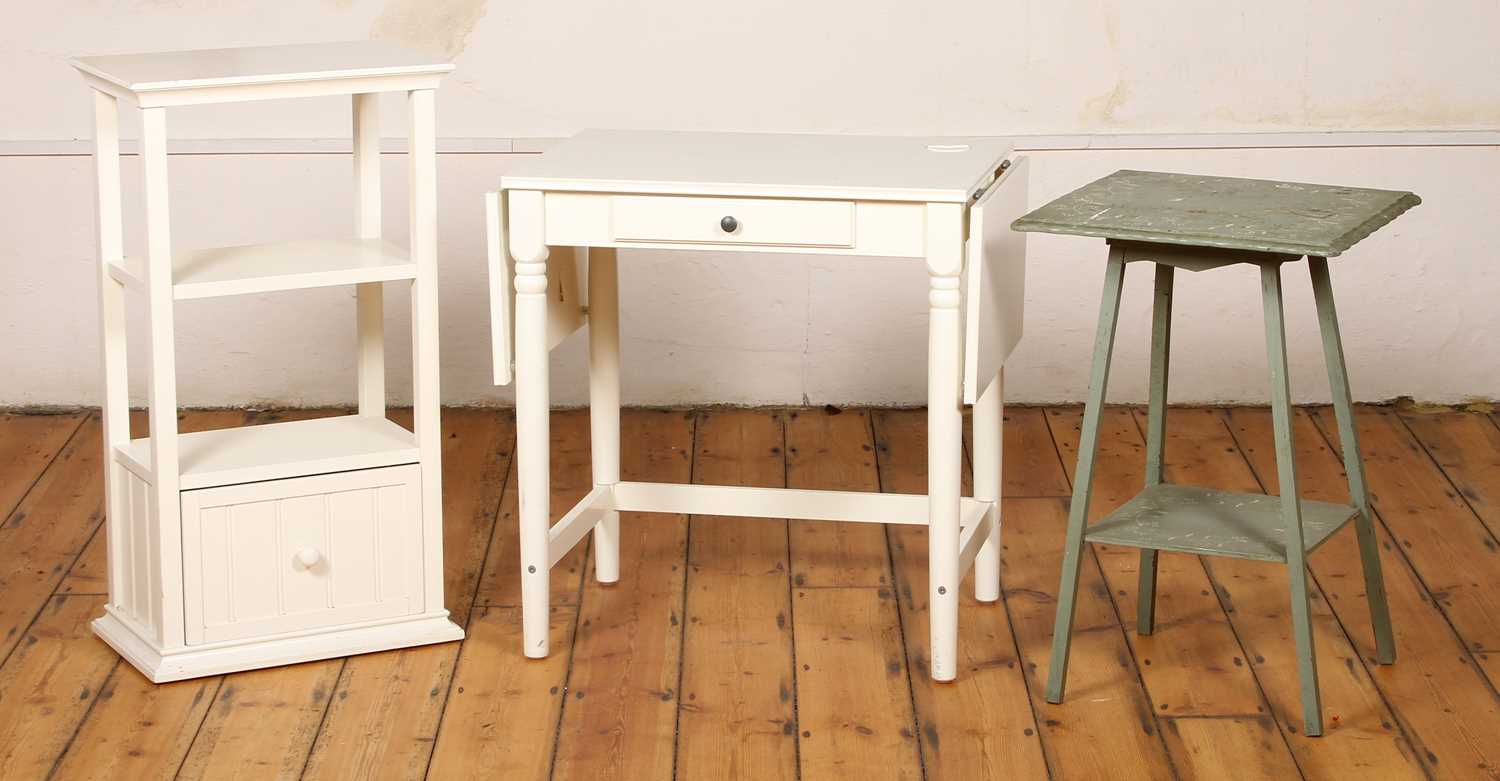Lot 678 - A white painted drop leaf table/desk, w.74cm