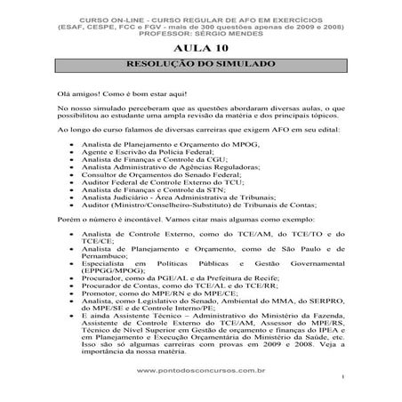 Curso Regular de AFO em Exercícios - Aula 10 | PDF