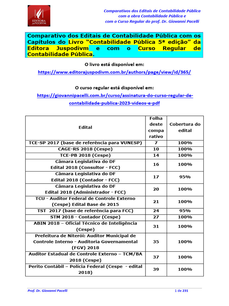 Comparativos Dos Editais Com Os Capítulos Do Livro CPU e Aulas Do Curso ...