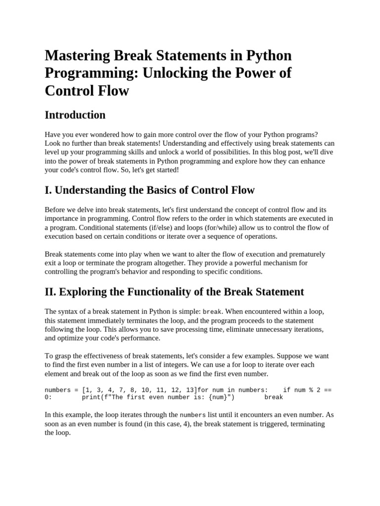 Mastering Break Statements in Python Programming Unlocking The Power of ...