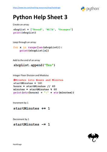 Based on this image's title: “Python Programming Help Sheets | Teaching Resources”
