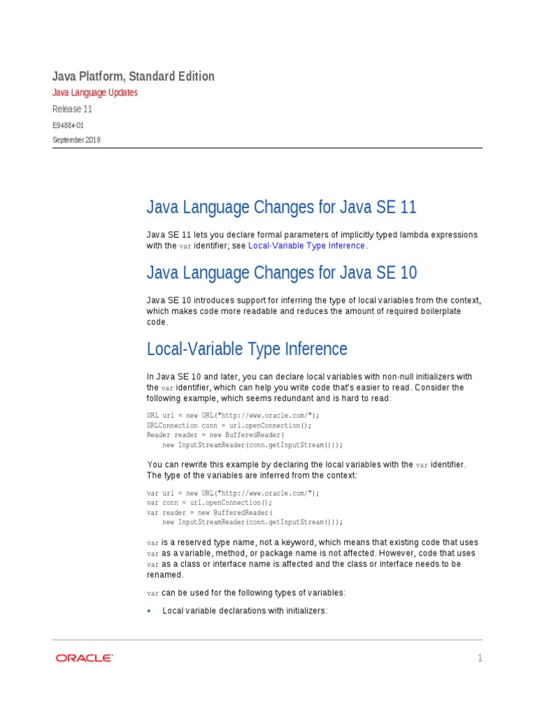 Java Se Language Updates | PDF | Class (Computer Programming) | Java ...