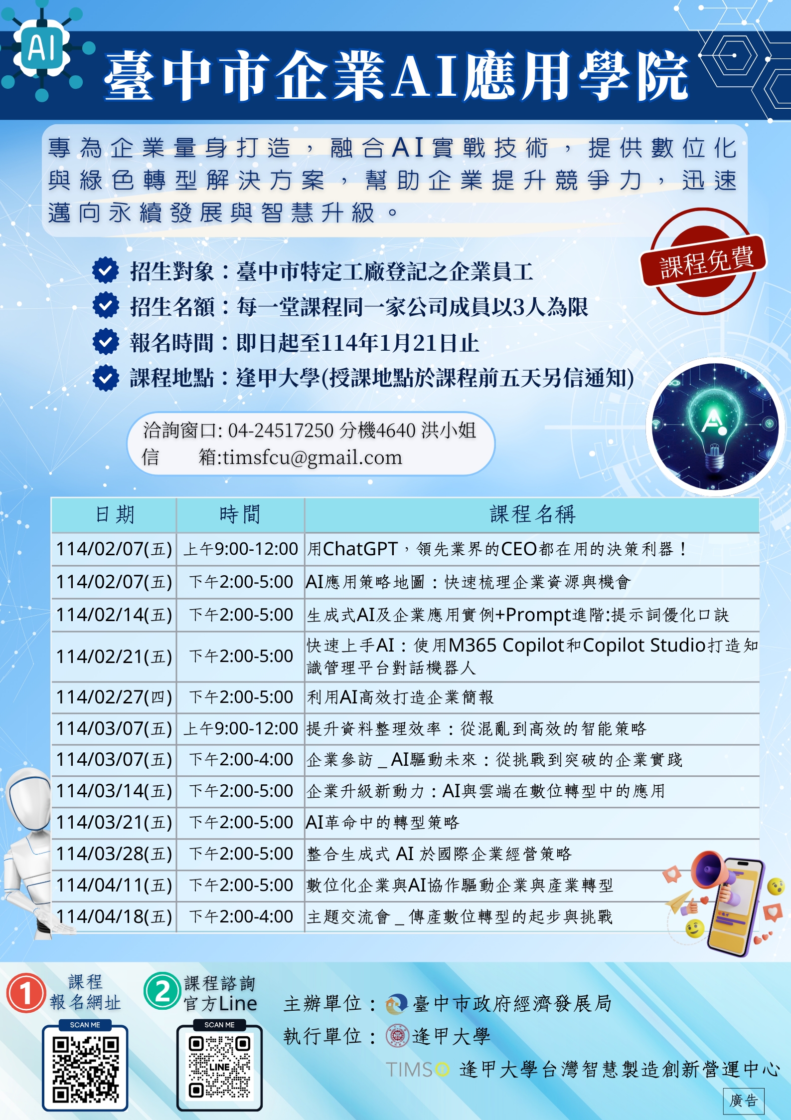 臺中市企業AI應用學院 (2/7~4/18) | 臺中市工商發展投資策進會
