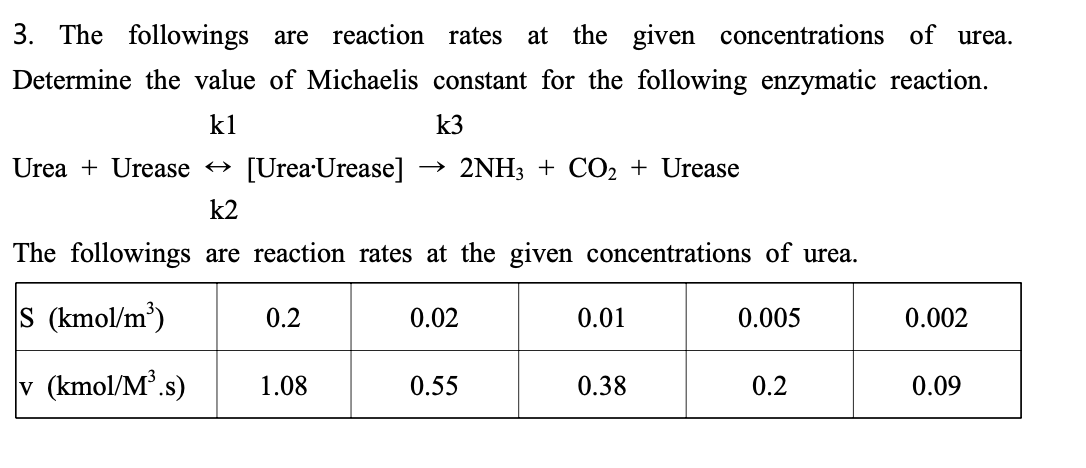 Answered: 3. Consider the following enzyme-catalyzed reaction of urea ...