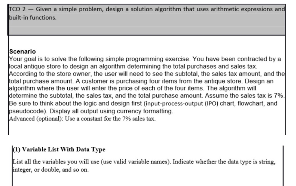 Solved Given a simple problem, design a solution algorithm | Chegg.com