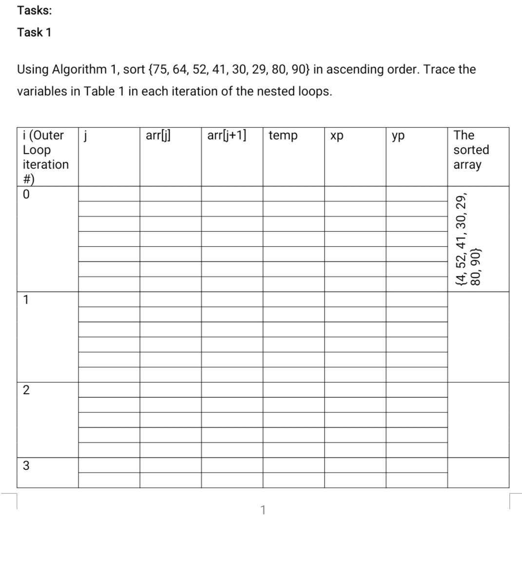 Solved Tasks: Task 1 Using Algorithm 1, sort {75, 64, 52, | Chegg.com