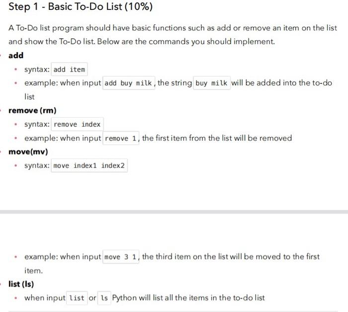 Solved Step 1 - Basic To-Do List (10%) A To-Do list program | Chegg.com