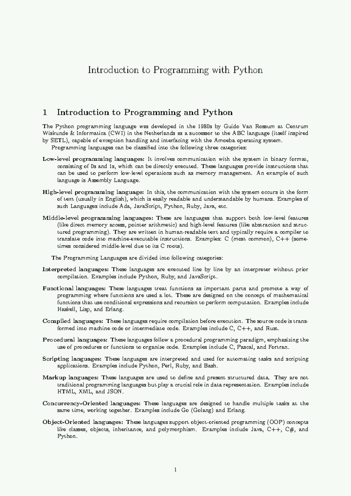 Notes Introduction to Python - Introduction to Python Python is an easy ...
