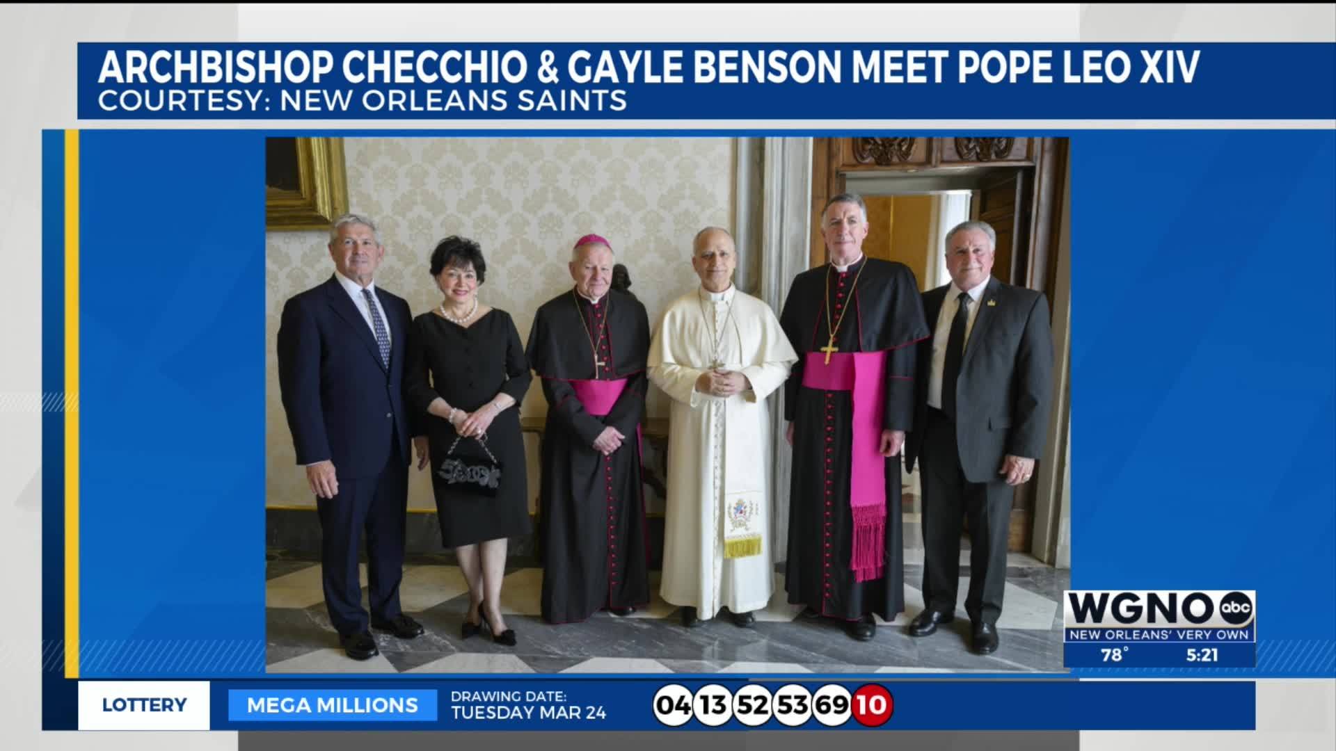 New Orleans archbishop, Gayle Benson meet Pope Leo XIV