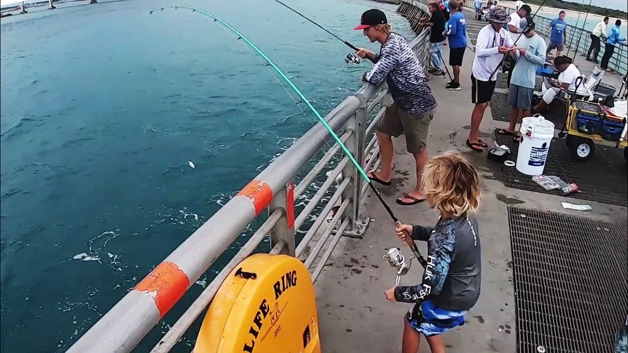 Kid hooks a monster fish and it almost pulled him in - caught on camera