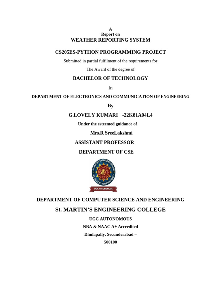 Python Programming Project Report - B.Tech in Industrial Engineering ...