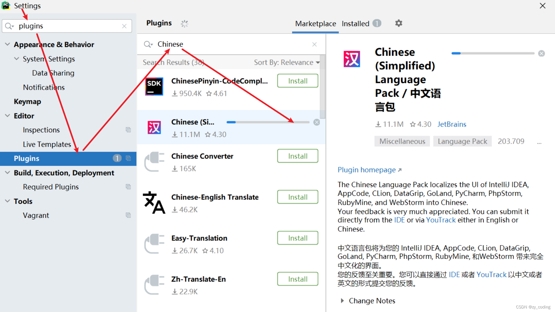 PyCharm之汉化插件的安装_pycharm的中文插件怎么安装-CSDN博客