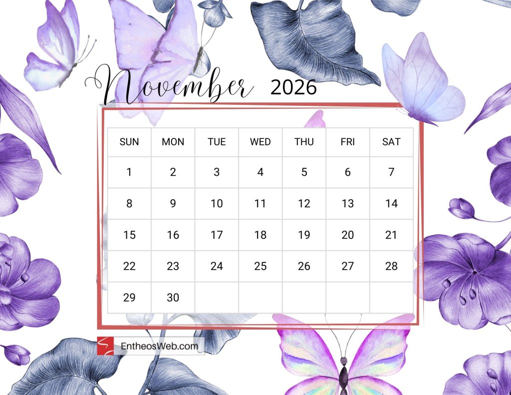 November 2026 Calendar Printables | EntheosWeb