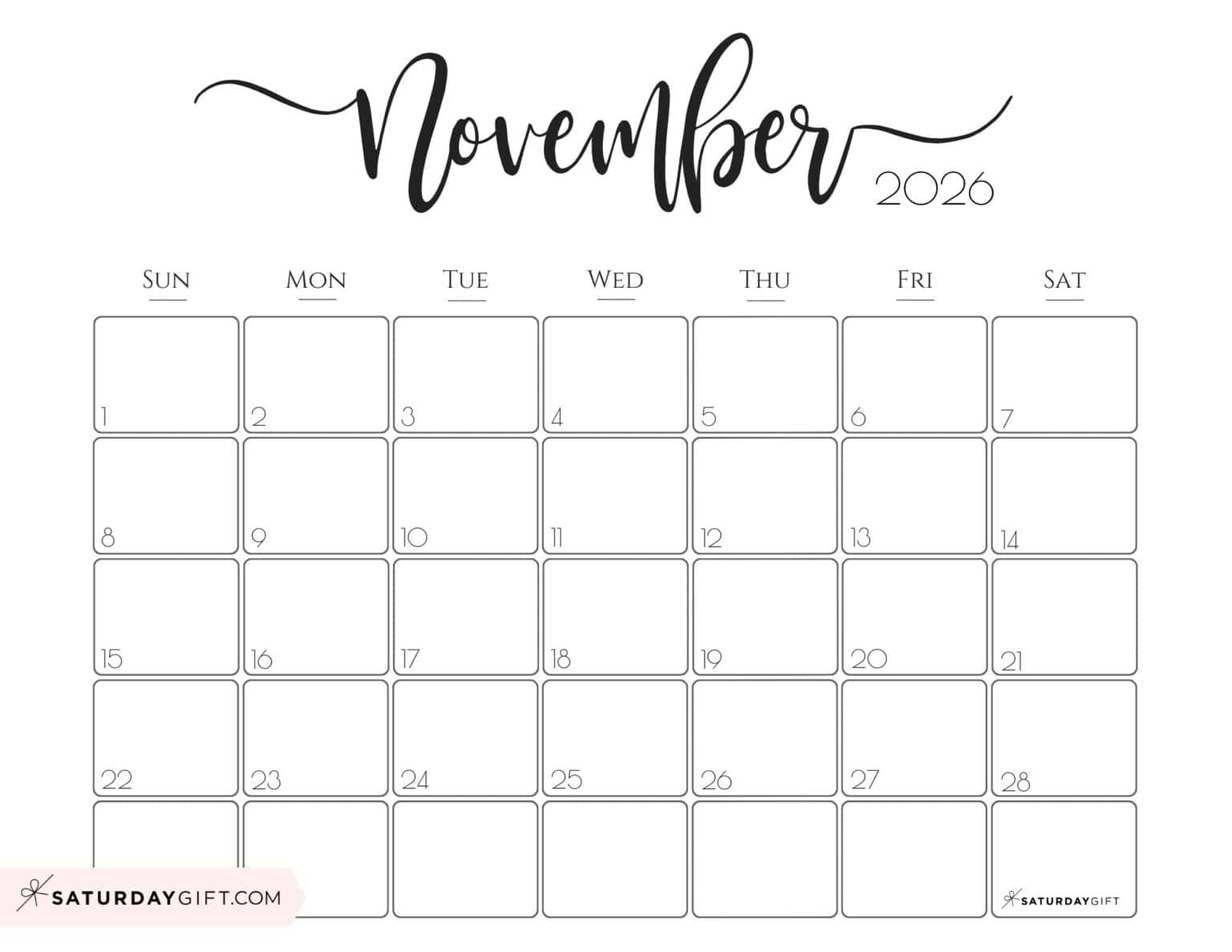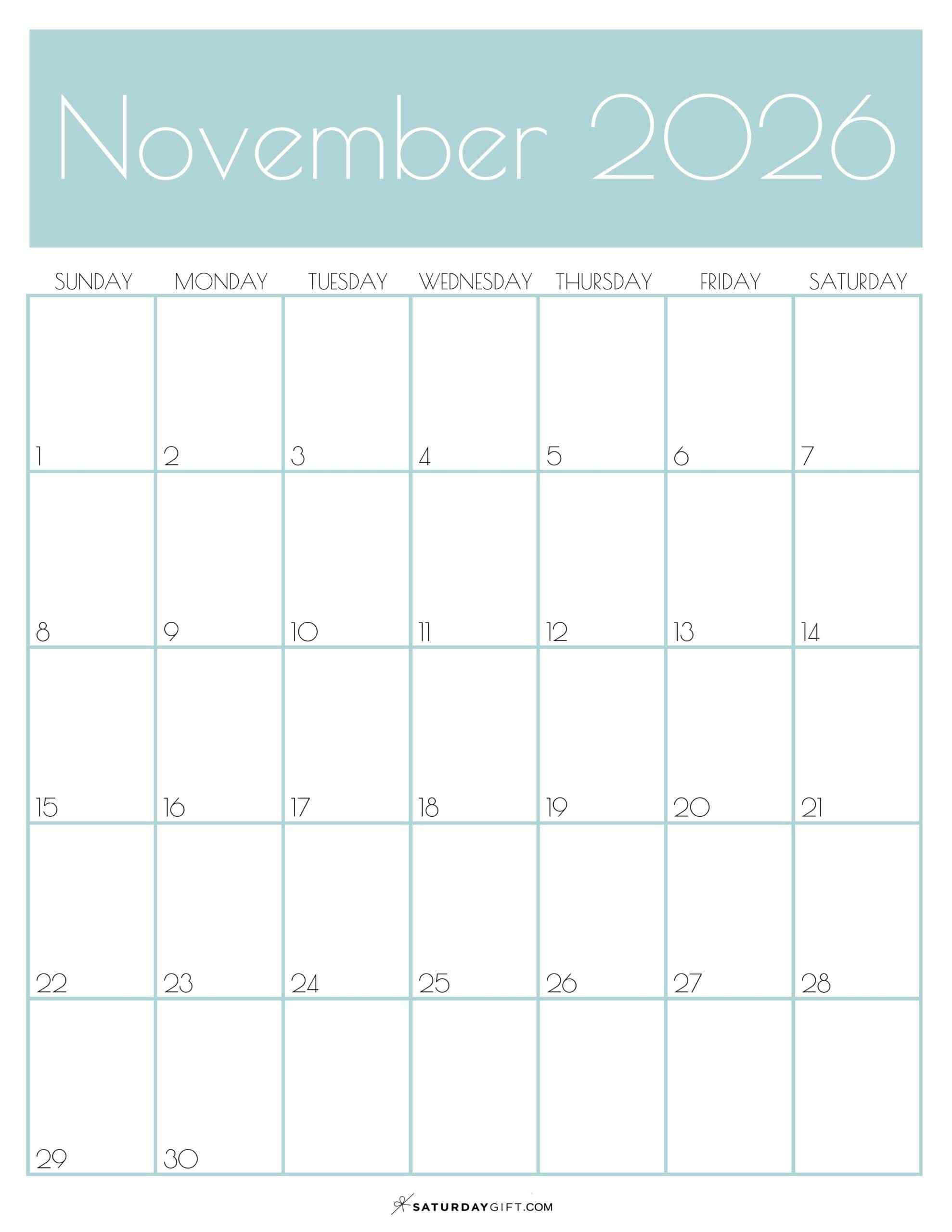 November 2026 Calendars - 23 Cute Free Printable PDFs by SaturdayGift