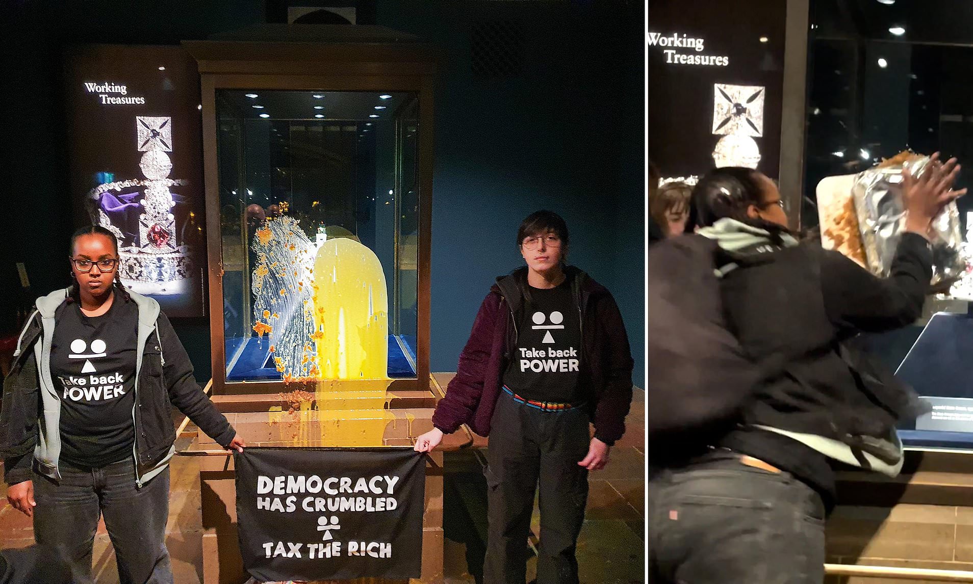 Four activists deny criminal damage after custard and crumble thrown at ...
