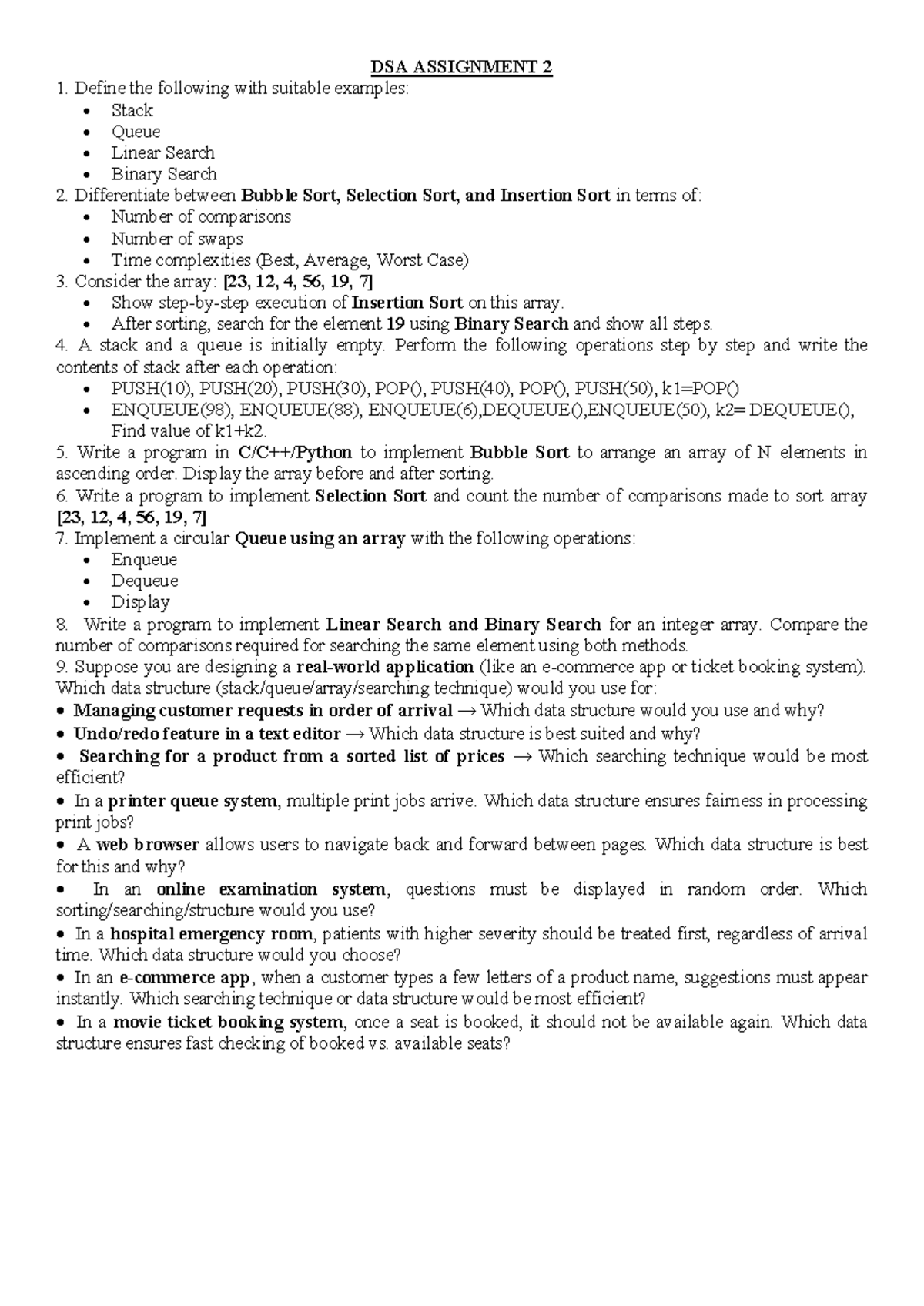 DSA ASSIGNMENT 2: Data Structures & Algorithms Concepts and Examples ...