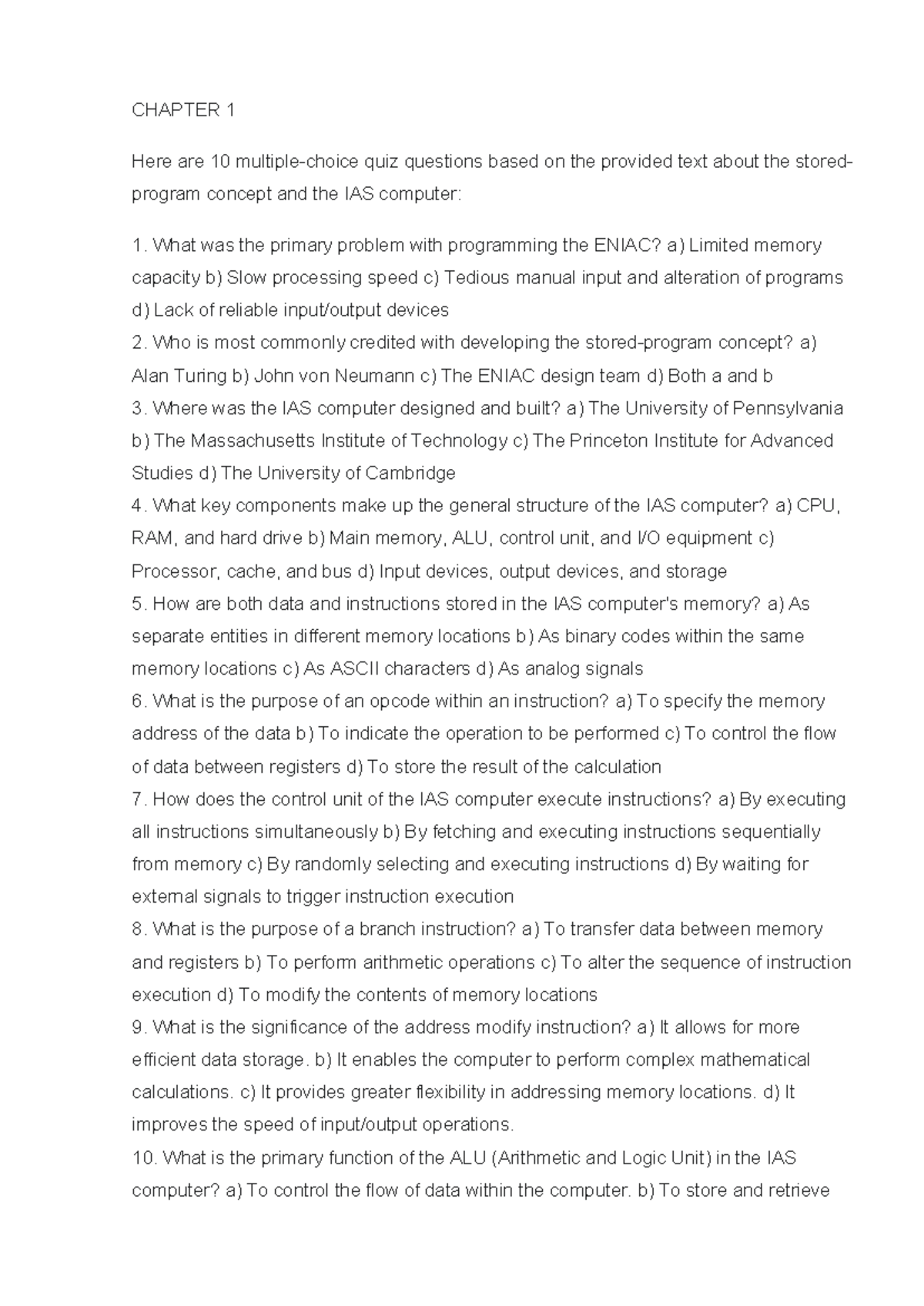 Computer Architecture Questions - CS101 Final Exam Review - Studocu