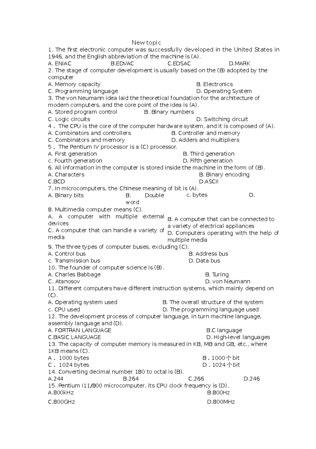 Multiple Choice Questions for Course Code: CS101 - Final Exam Review ...