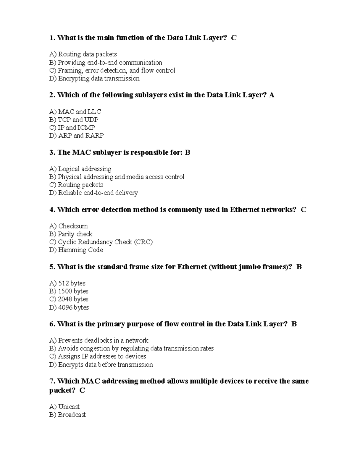 Data Link Layer MCQs - CS101 Final Exam Guide - Studocu