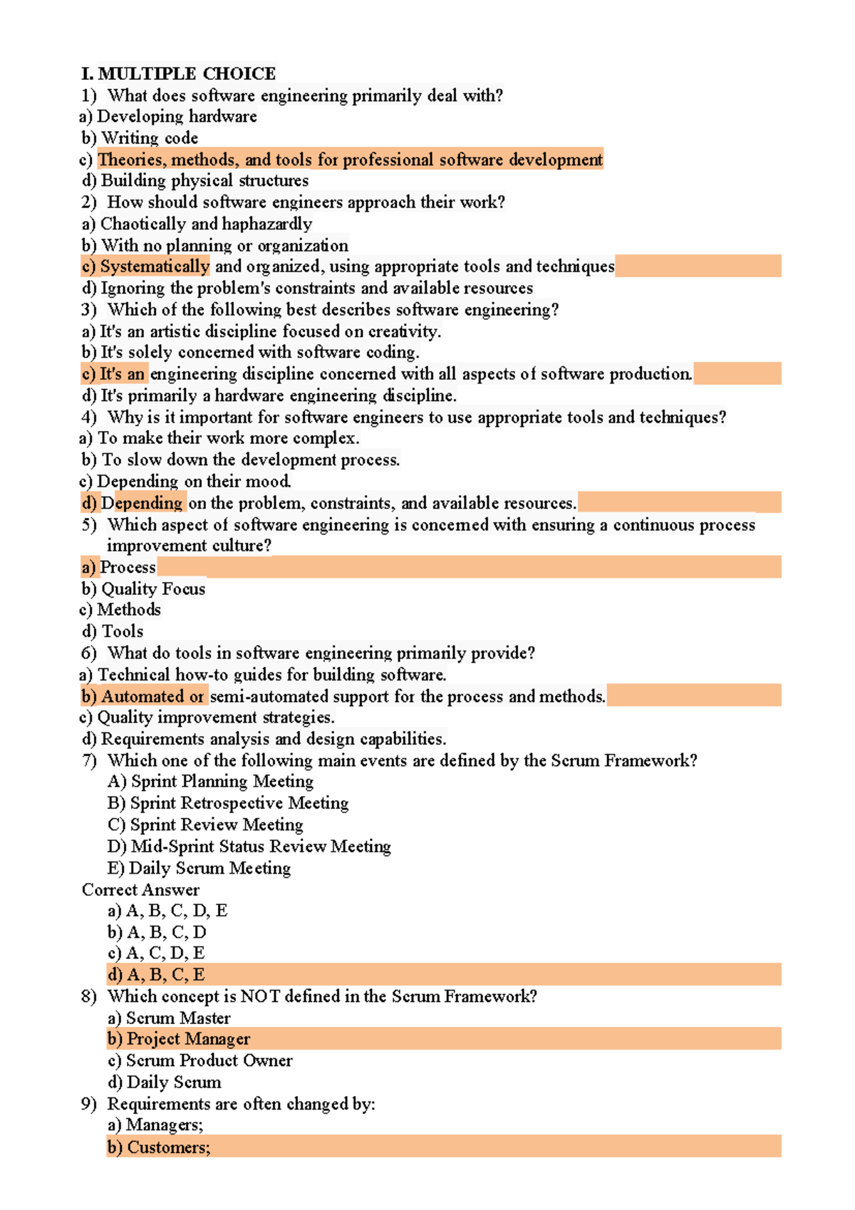 Software Engineering MCQ & Short Answer Review - CS101 Final Exam - Studocu