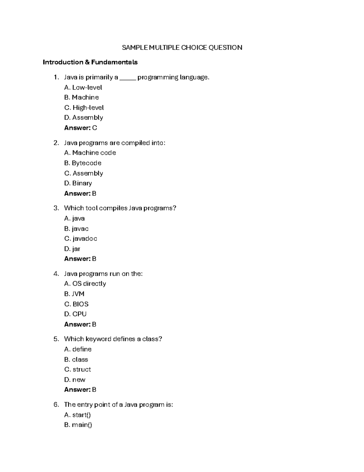 SAMPLE MCQ: Java Fundamentals & OOP Concepts (CS101) - Studocu