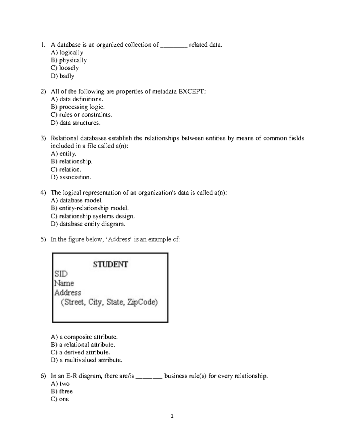 Final Exam Questions for Database Systems (CS101) - Studocu